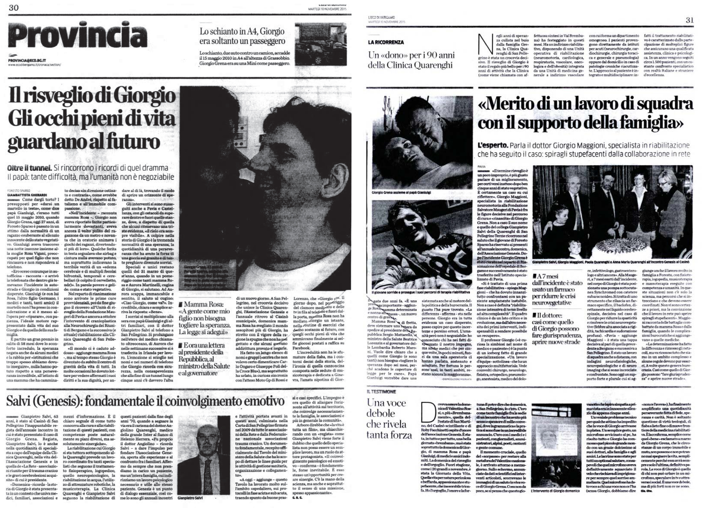 Il risveglio di Giorgio. Gli occhi pieni di vita guardano al futuro